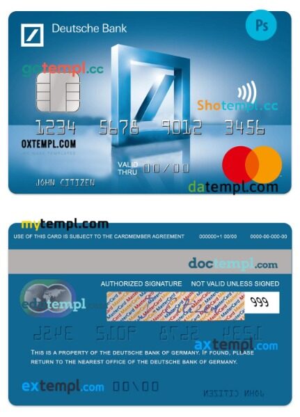 Hungary UniCredit Bank blue credit mastercard template in PSD format