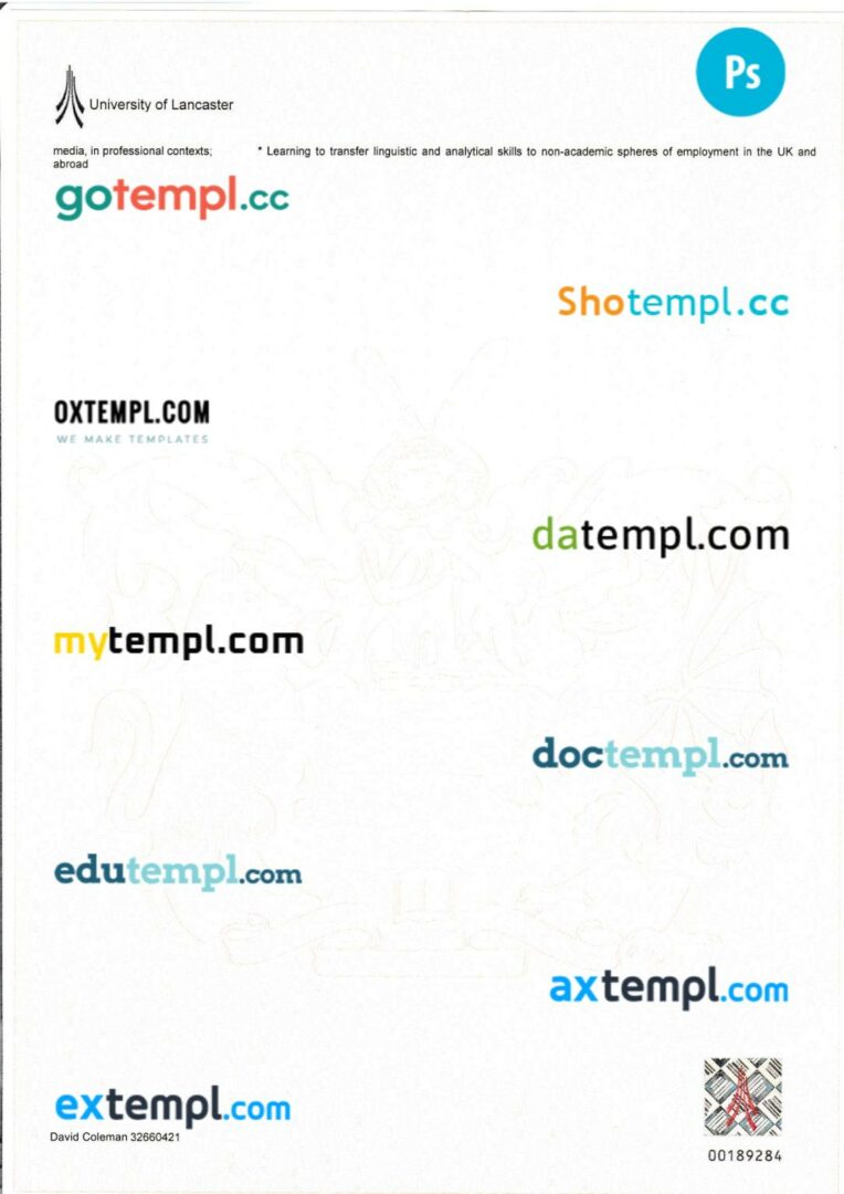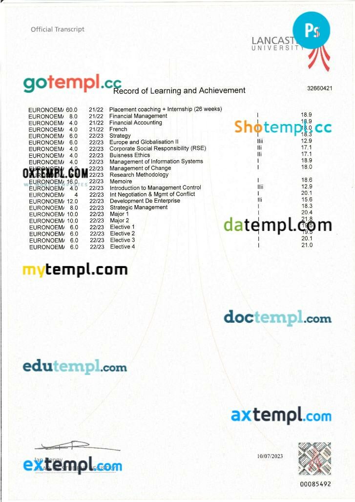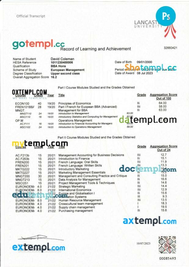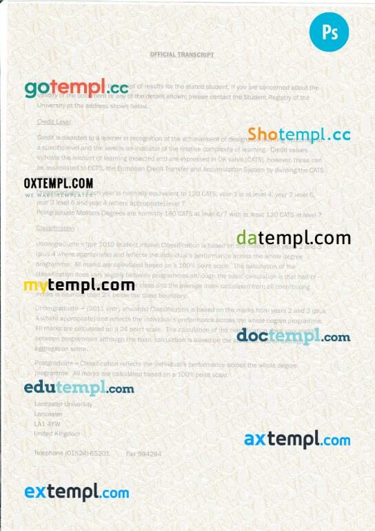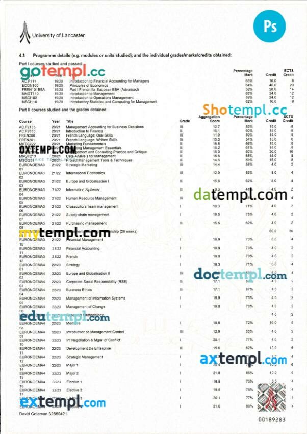 Fully editable sample of official academic transcript of records in PSD format – easy to fill.